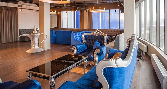 В аренду помещения входит оборудованный банкетный зал 220 кв. метров (6 этаж) на 70 посадочных мест.